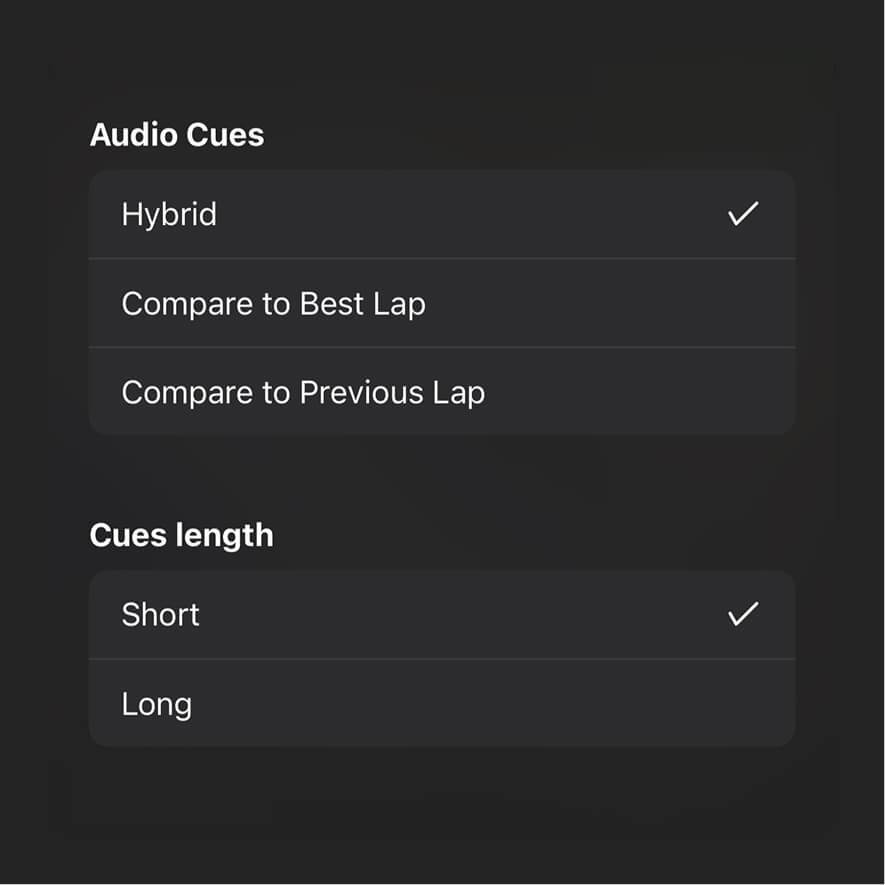 Select the lap statistics you want to hear, whether it's time, progression, or best lap. Customize the message length to stay focused and informed throughout your session.